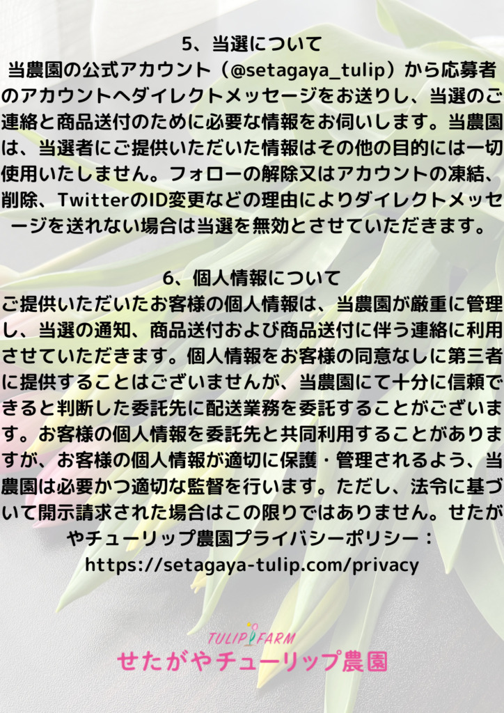 せたがやチューリップ農園がお送りするキャンペーンの規約になります。