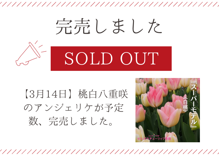 3月8日から販売開始した「桃白のスーパーモデル」が予定数完売いたしました。
